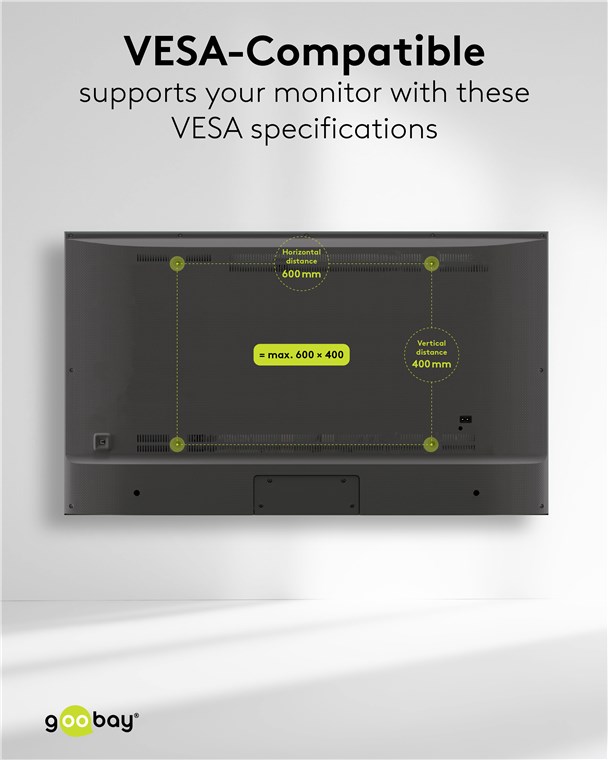 - Uchwyt do telewizora jest zgodny ze standardem VESA 600x400 mm oraz wszystkimi mniejszymi wymiarami VESA