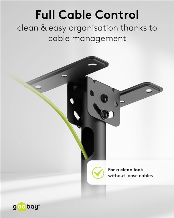 - Zintegrowany system zarządzania kablami dyskretnie ukrywa kable w ramieniu teleskopowym – zapewnia to estetyczny wygląd bez luźnych kabli